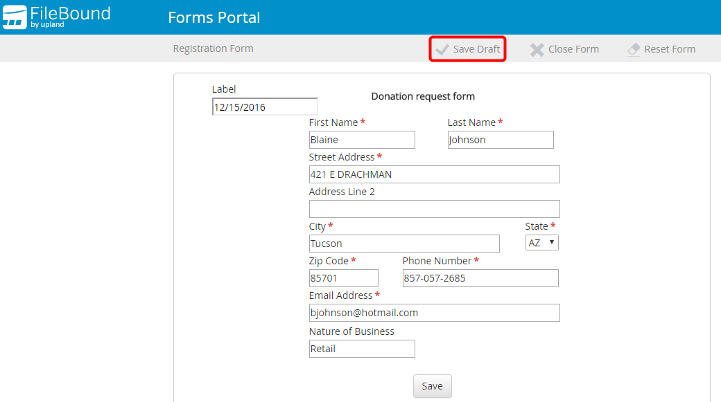 Save a draft version of a form on the Forms Portal