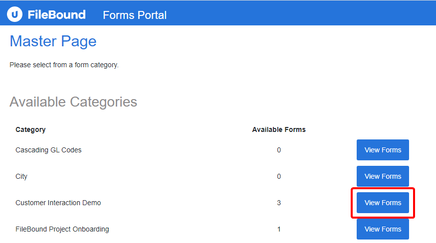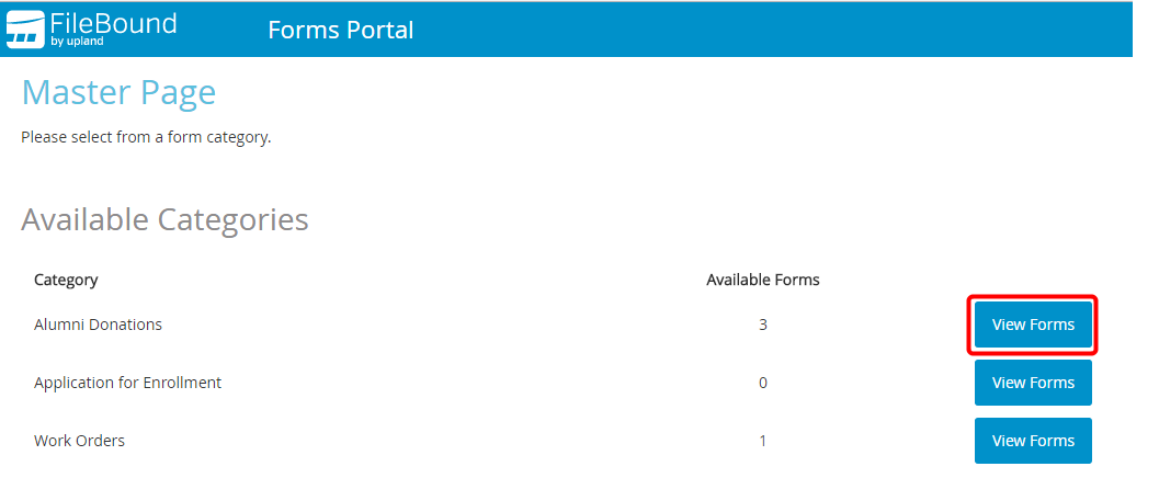 1. Click View Forms next to a category within the Available Forms section.