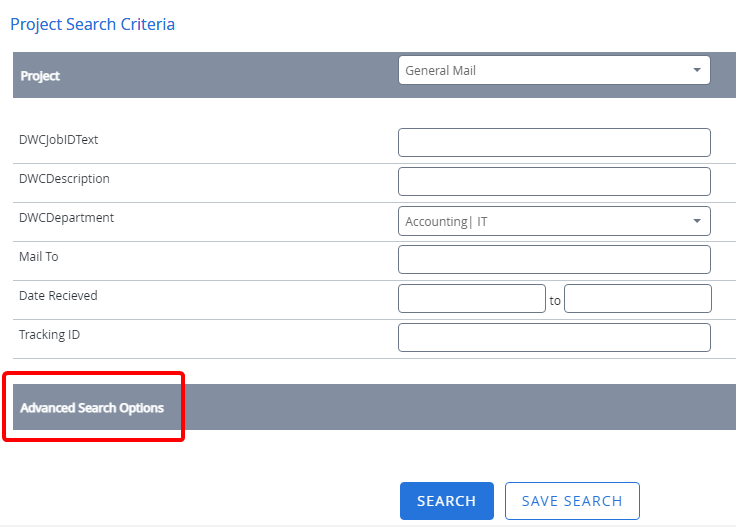 Click Advanced Search Options to expand the section.