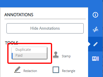 Select the type of annotation you want to apply to the document. The following types of annotations are available: