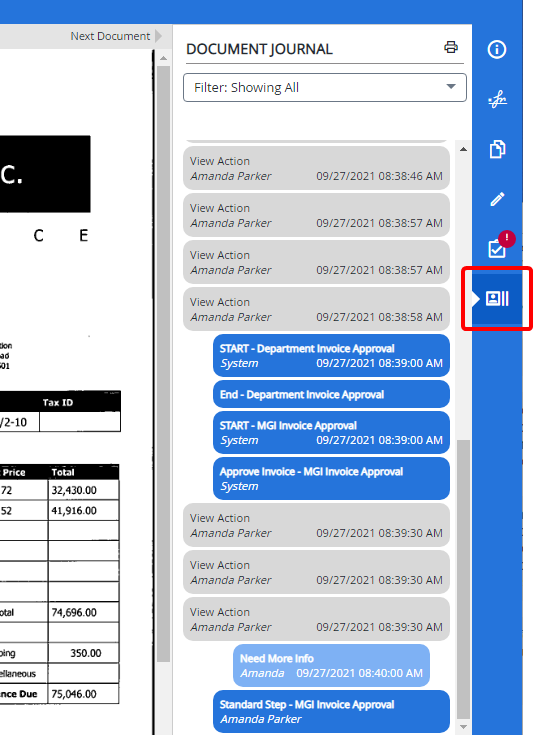 Click the Document Journal filter.