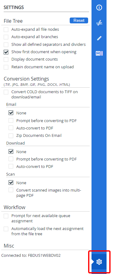 Automatically load the next assignment from the file tree: Automatically loads the next routed document from the file tree once you approve a routed document in the Web Viewer.