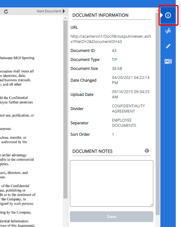 Document Notes: Notes can be added to a document to provide additional information about the document when viewing it. These notes can also aid in retrieving the document when it is searched for.