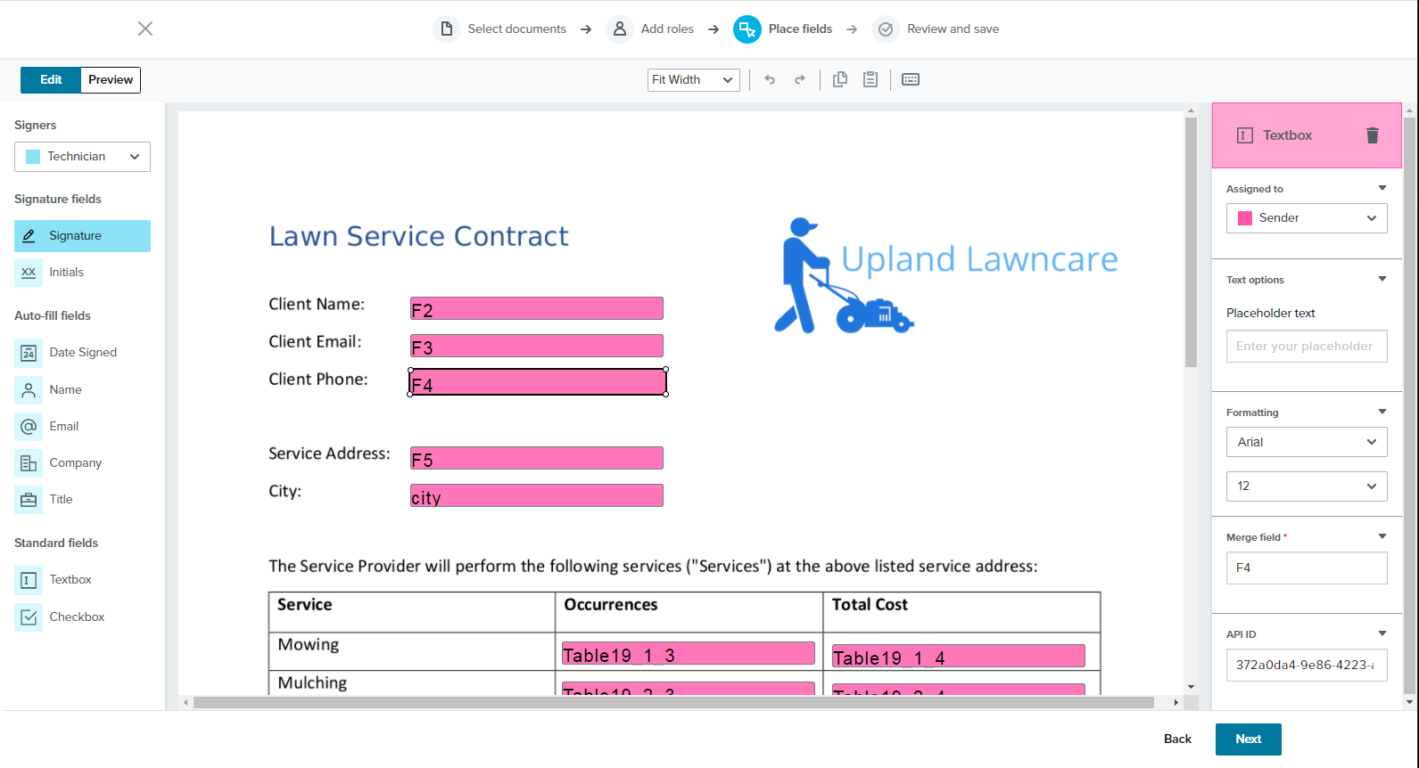 Add fields in Docusign