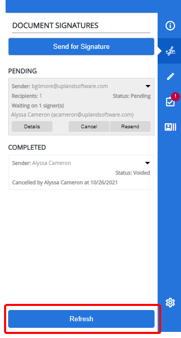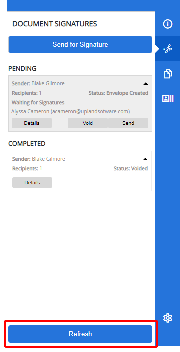 Click Refresh to ensure that you are viewing the most recent document signature statuses.