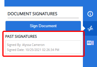 Signatures that have been removed from the document will displayed under Past Signatures.