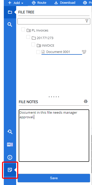 Enter file notes, then click Save.