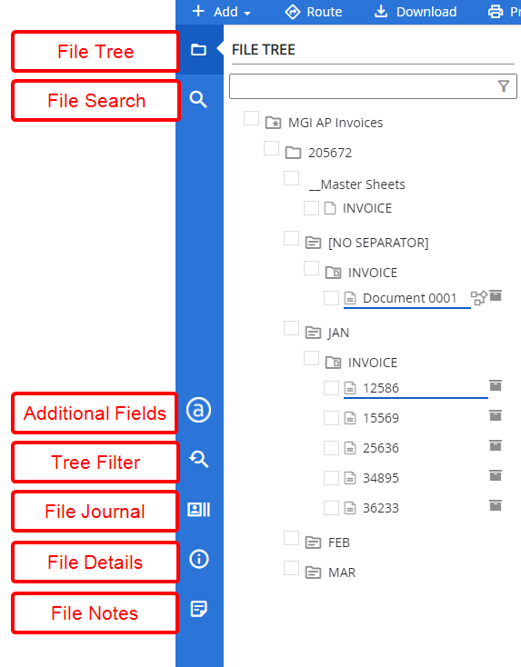 Filter the File Tree to easily locate separators, dividers, and documents. See Filter and sort the File Tree for more information.
