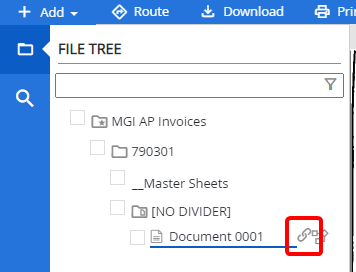 Once a document has been shared externally, an icon will display next to the document in the File Tree.