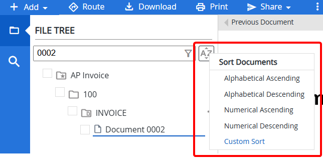 Sort documents in the File Tree