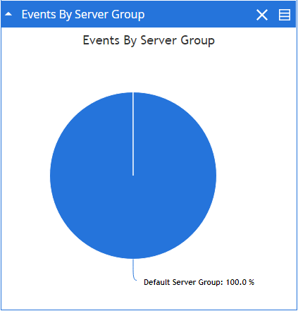 The Events by Server Group widget provides information about the automation processes from various server groups. The information is displayed as a pie chart. Each section of the chart displays the number of times automation processes are processes that belongs to the server group that the section represents.