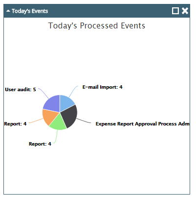 The Today's Events widget provides information about the automation processes that were run today. The information is displayed as a pie chart. Each section of the chart provides information about the number of times the automation process that the section represents was run today.