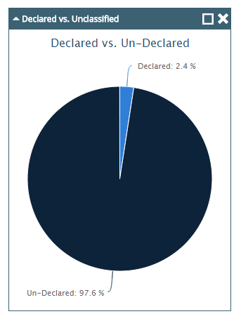 The Declared vs. Un-Declared widget provides information about the documents that are declared and un-declared as records. The information is displayed as a pie chart. Each section of the chart represents the percentage of the documents that are declared and un-declared as records.