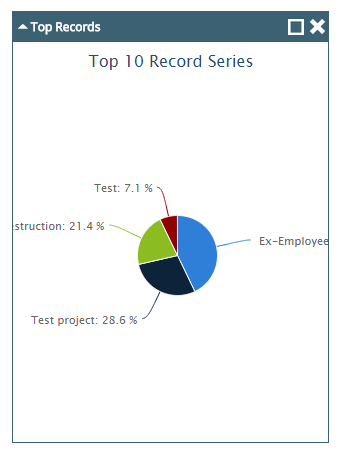 The Top Records widget provides information about the top ten record series that contain the greatest number of records. The information is displayed as a pie chart. Each section of the chart represents the number of records that are available in the record series.