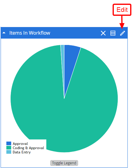You can modify the title of the widget, color of the title bar, project, and workflow process by clicking Edit on the title bar.