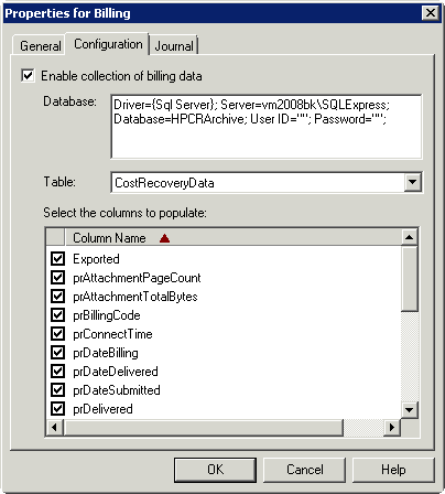 Note: Any column you do not select will not have data entered for them and must be either null or have defaults configured in the table itself.  When writing a billing record, if you do not have a value for that column or you are not configured to place a value into a column, the null or the default specified value is inserted in the column.