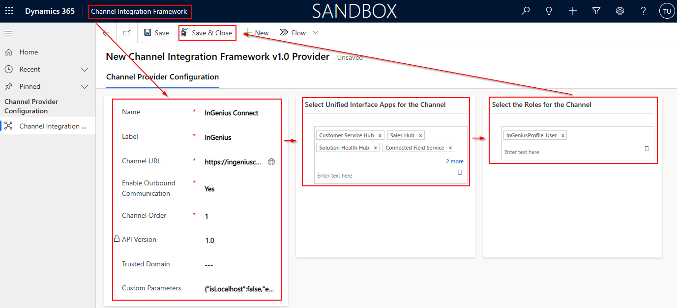 - Under Select the Role for the Channel, select the InGenius security role you created earlier. (InGeniusProfile_User)
