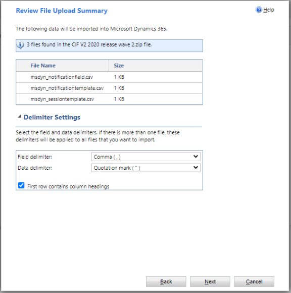 Ensure Files and Delimeter Settings are the same as in the image below, then select Next.