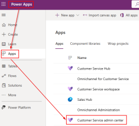 Navigate to the Apps section and open the Customer Service Admin Center app.