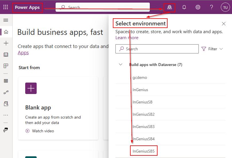 - Navigate to the Power Apps Page.