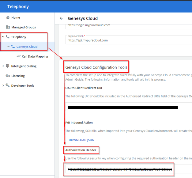 Genesys Cloud will require an Authorization Header to allow interfacing with the Upland Cloud. You will first need to obtain your security key from the InGenius Admin App before configuring the Authorization Header in Genesys.