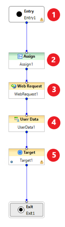 The entry block in this example is used for storing variables for use later in the flow for the web services data action. The user variables set are as follows: