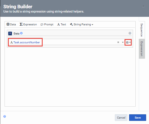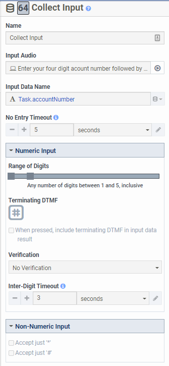 Collect Input action - record the user input to variable (Expression type variable) "Task.accountnumber"