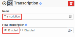 Transcription action - toggle Flow Transcription to 'enabled', required for voice transcription