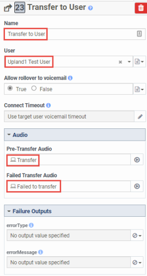Transfer to user/queue action - completes the flow and connects the call to user or queue