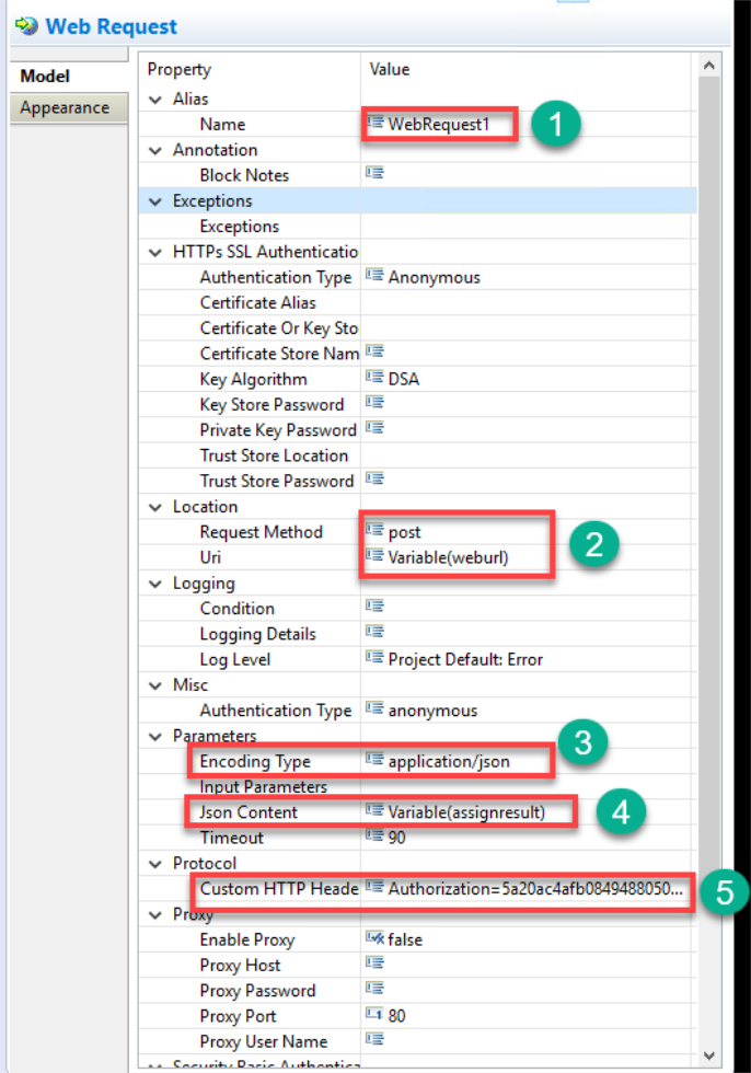 This block is used to invoke an HTTP request. The block in this example is configured as follows: