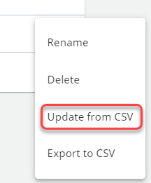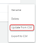 - Select Update from CSV and follow the steps to import the .csv file.