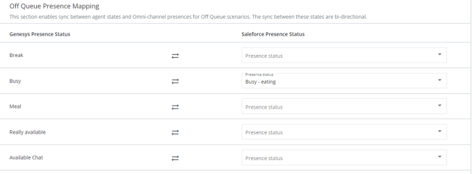 • You must map the 'Offline' Genesys presence status to the equivalent Salesforce presence.
