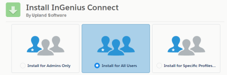 The Apex package installs the InGenius Admin App and InGenius client apps within Salesforce. The Admin App allows you to manage your InGenius product from within Salesforce.