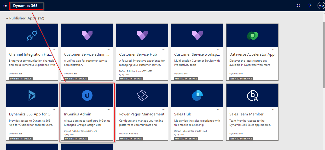 To integrate support for D365 with InGenius and install the InGenius Admin App, you will be provided with an InGenius Solution zip file that must be imported into your environment.