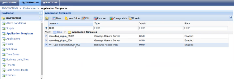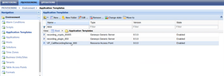 Navigate to PROVISIONING | Environment | Application Templates and search for the "VP_CallRecordingServer" application and ensure it is available and enabled.