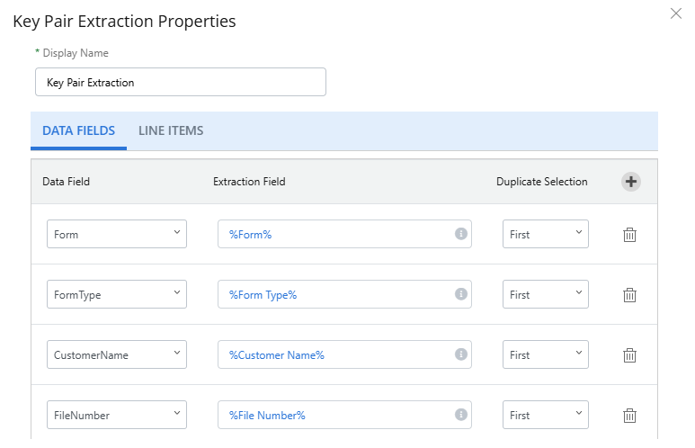 Tip: To help properly configure data field mappings, you can view names of all extracted values on the Data Fields tab in Document Properties.