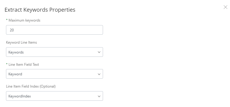 Enter the maximum number of keywords you want to pull from the document in the Maximum Keywords box. You can specify anywhere between 1 - 99.