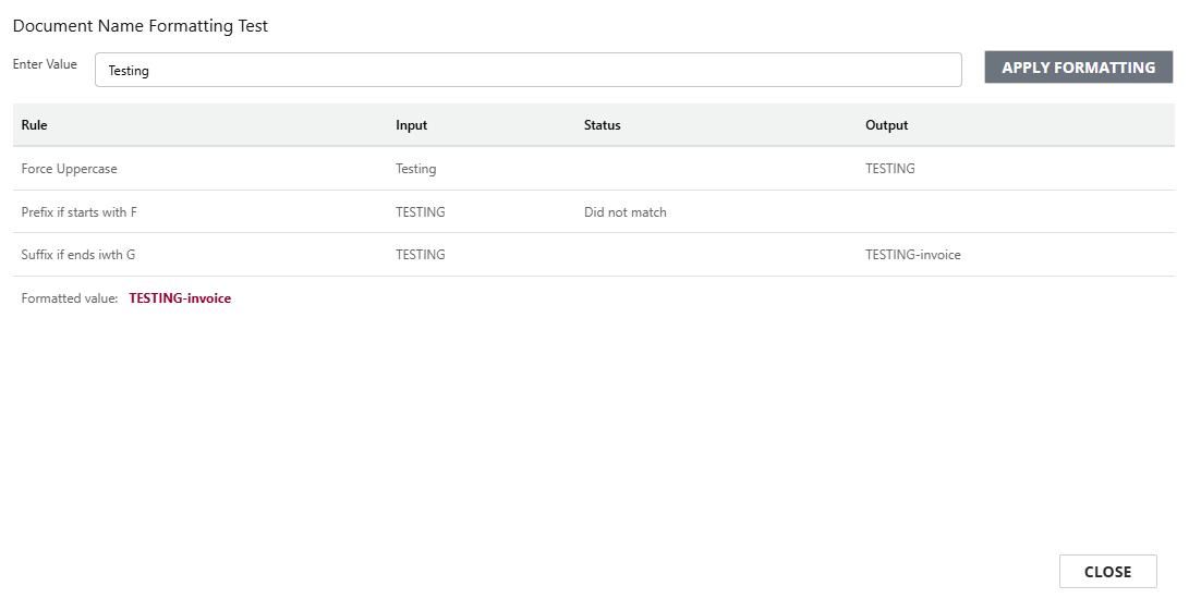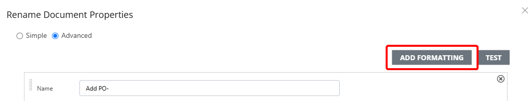 - Advanced: Allows you to specify formatting rules for the document name. See Add formatting to a document name below.