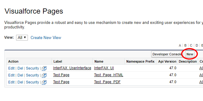 Click “New”, paste in the contents of UI.txt, and save (Be sure to note the name you give to the page, e.g. “InterFAX_UI” in the following steps).