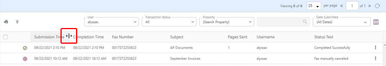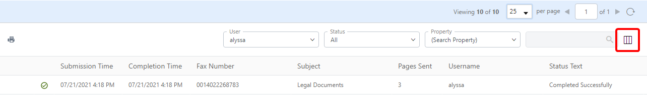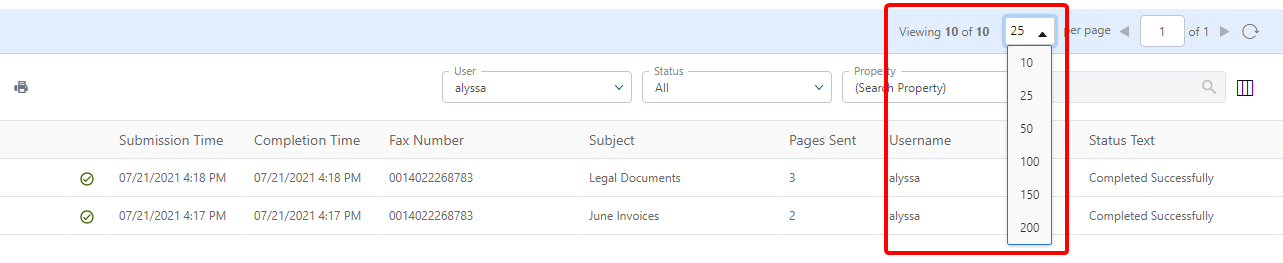 Page views on the Inbound and Outbound Faxes pages and many Settings pages can be modified to display information in a format that is most useful for you.