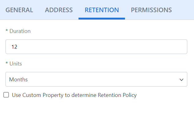 Use Custom Property to determine Retention Policy: This option allows you to enforce a retention policy based on a custom property.