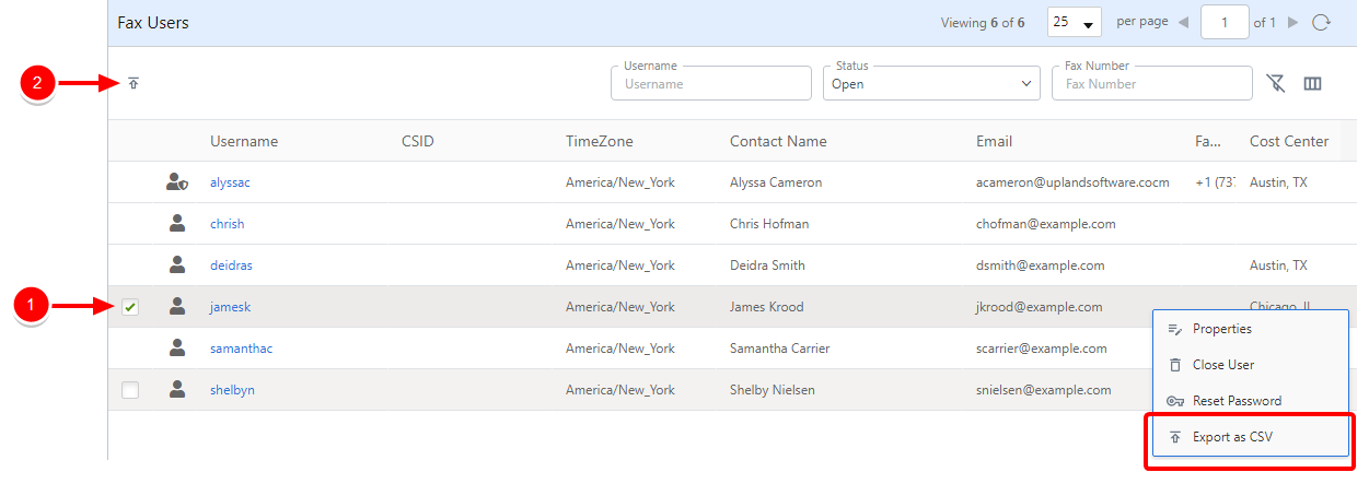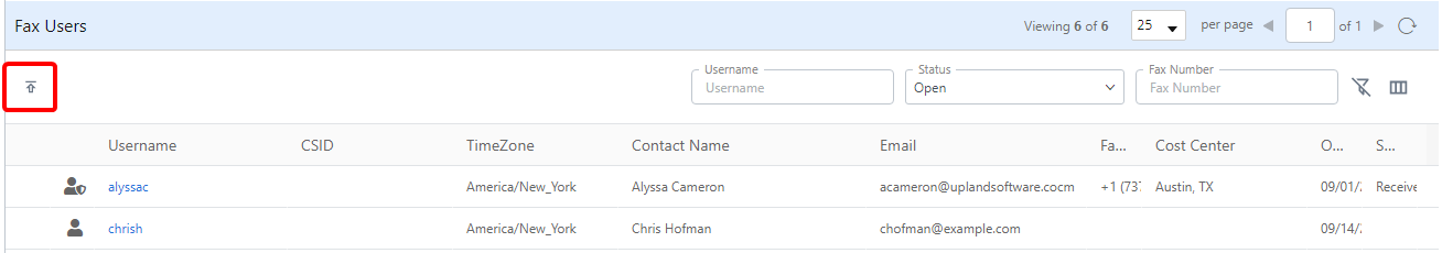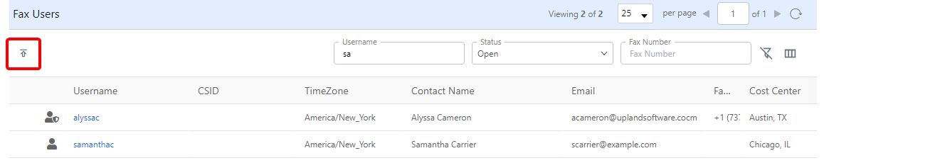 Click Pin filters to save the current filters and apply them every time you navigate to the Fax Users page. Click Unpin filters to removed pinned filters.
