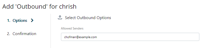 2. In the Allowed Senders field, enter the sending email address, then click Next.