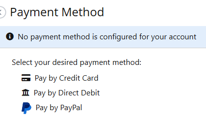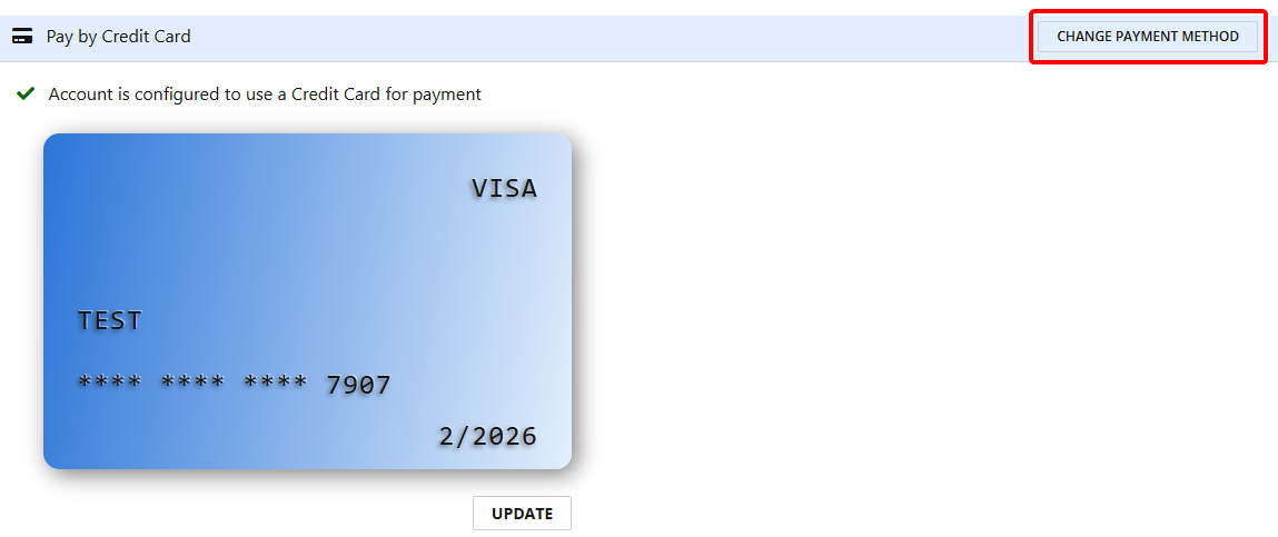 Your credit card, direct debit information, or PayPal account can be set up on the Payment Method page for billing purposes.