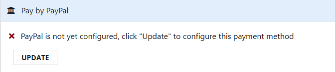 For Direct Debit and Paypal, click Update to configure the payment method.