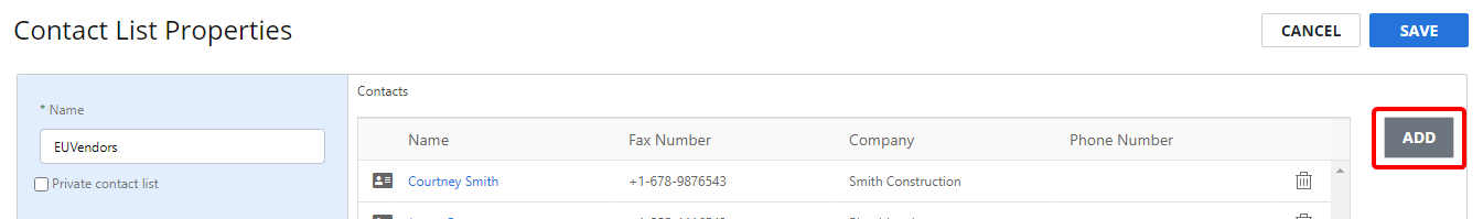 In Contact List Properties, you can rename the contact list and add, edit, or remove contacts.