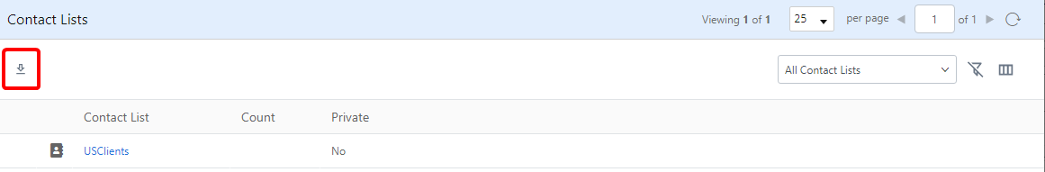 Or, select the check box next to one or multiple contact lists, then click Delete.