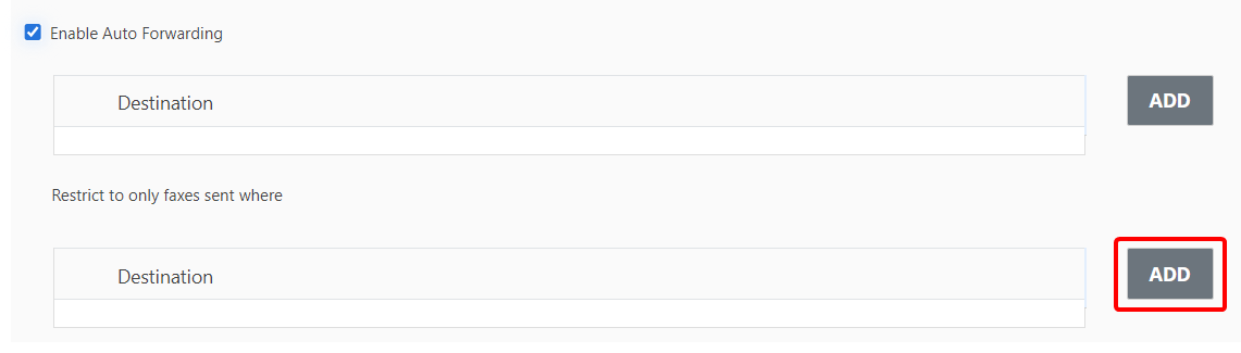 You can use InterFAX’s auto forwarding feature to automatically forward received faxes to another fax number or to a contact list. This option is only available for users with outbound services.