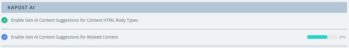 Enable Gen AI Content Suggestions for Content HTML Body Types: Select this checkbox to enable the generative AI feature for content with HTML body types.
