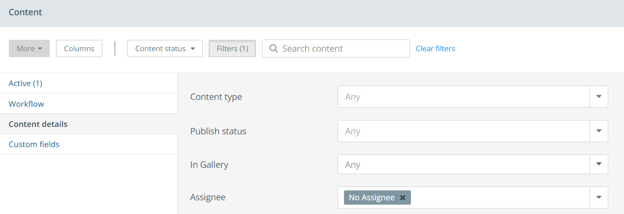 3. Add filters using Workflow, Content Details, and Custom Fields available in your instance.